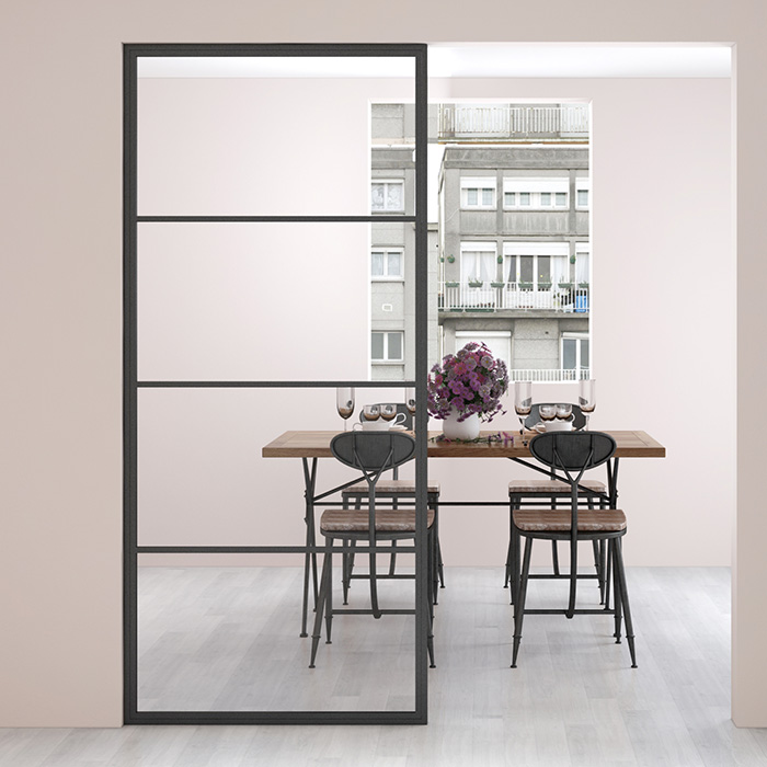 Maatwerk stalen schuifdeur 4-vaks rookglas glas