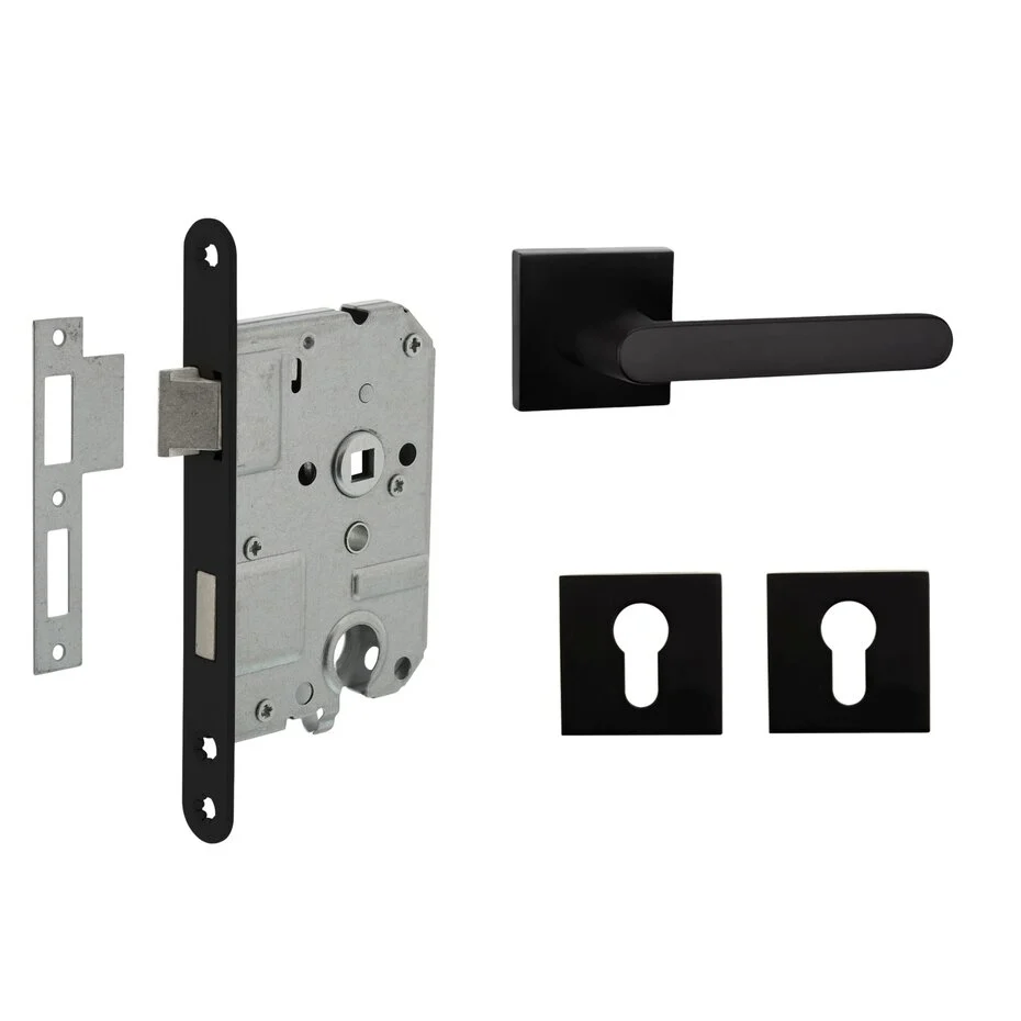 De Linee deurklink combineert stijl en functionaliteit. Met matzwarte poedercoating, rechte greep met ronde details en strak vierkant rozet geeft hij je deur een moderne uitstraling. Dankzij montageplaatjes blijven schroeven verborgen voor een strakke afwerking. De set wordt geleverd inclusief cilinderrozetten en dag- en nachtslot (cilindergat PC 55 mm).
