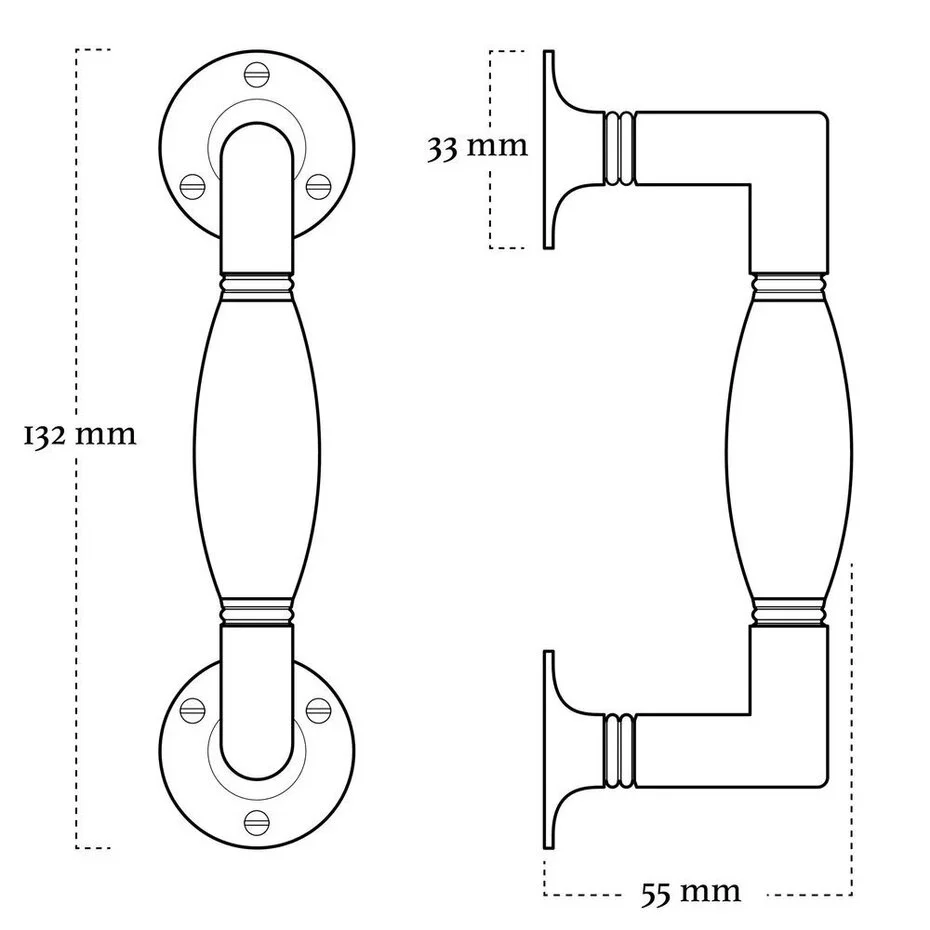 Deze compacte handgreep in typische jaren ’30 vormgeving is uitermate geschikt voor kastdeuren, lades en kleinere schuifdeuren. De combinatie van gelakt messing en bakelieten grepen zorgt voor een stijlvolle, nostalgische uitstraling die perfect past in een klassiek interieur.