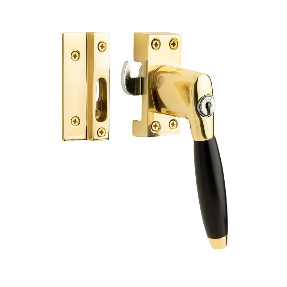 Klassieke raamsluiting met slot, rechts, messing gelakt