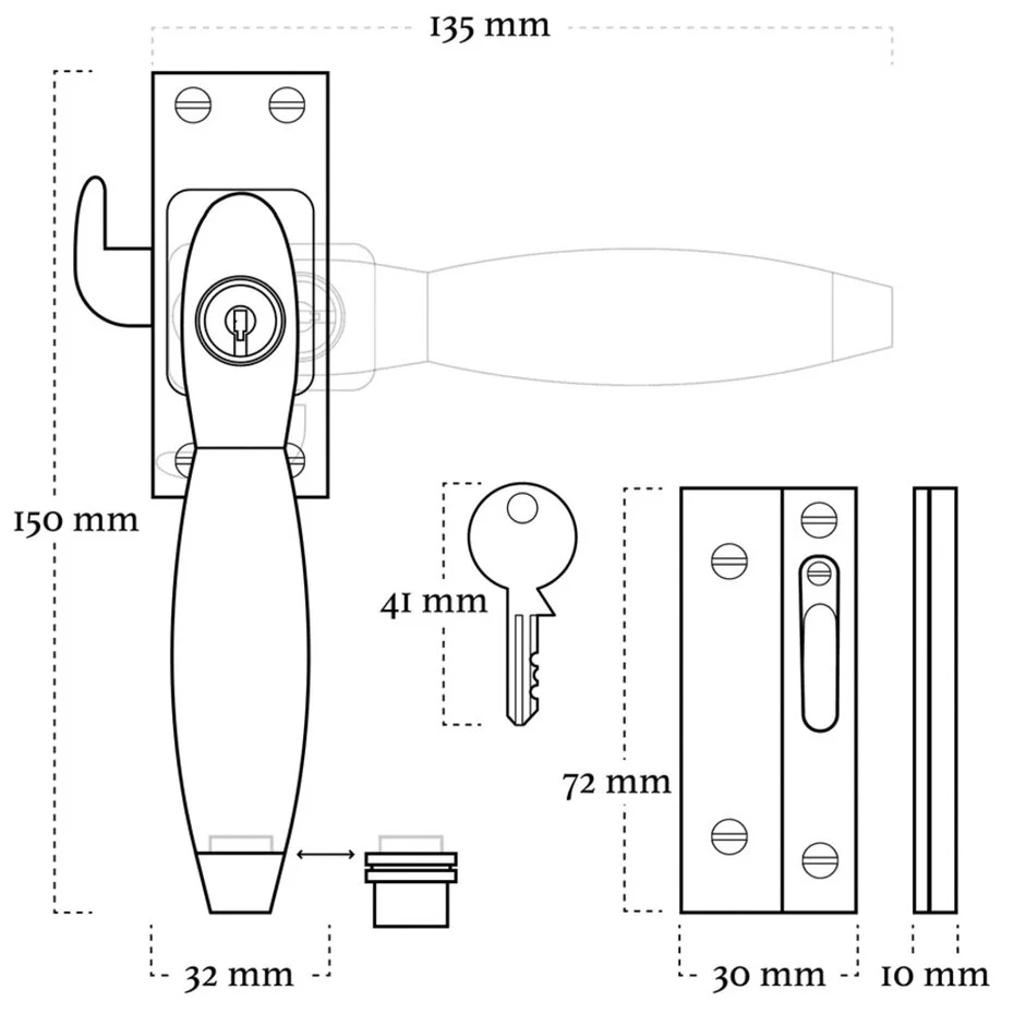 Geef je ramen een authentieke jaren ’30 uitstraling met deze afsluitbare raamsluiting in Klassiek-model. Het ingebouwde slot zorgt voor extra veiligheid en houdt ongewenste bezoekers buiten.
