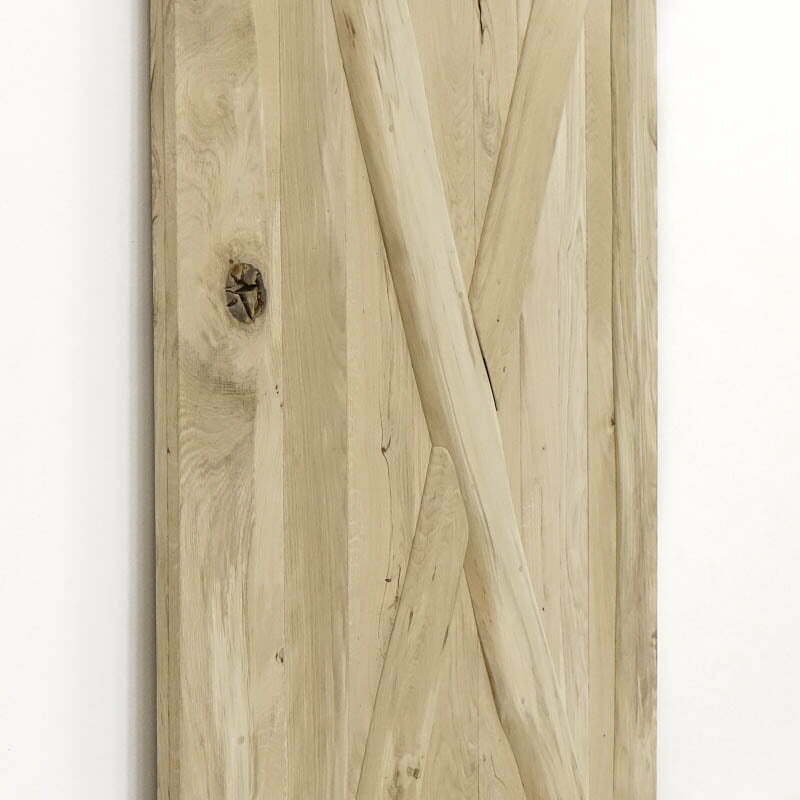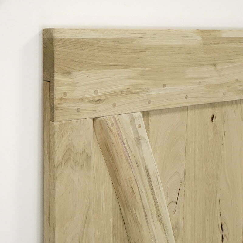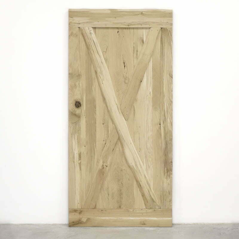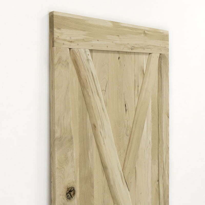 Deze houten schuifdeur geeft jouw interieur in een handomdraai een rustieke uitstraling. Het massieve eikenhout is namelijk nog onbehandeld, waardoor je alle scheuren en noesten van het natuurlijk hout nog duidelijk ziet.