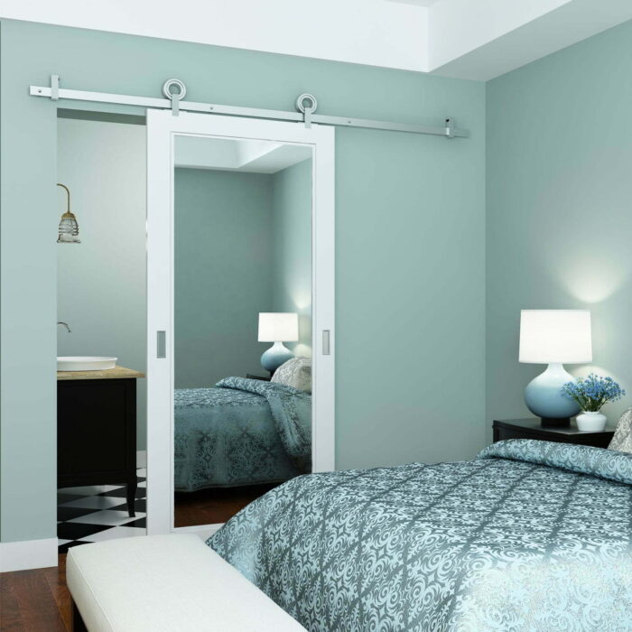 Op locaties waar een scharnierdeur teveel ruimte inneemt, of wanneer het gat van de deur zich niet leent voor een standaard maat deur, is een schuifdeur de ideale oplossing. Modern of klassiek, industrieel, landelijk of futuristisch; schuifdeursystemen passen in ieder interieur. Om een schuifdeur goed te laten functioneren is er een schuifdeur railsysteem nodig. Dat zijn de elementen die aan de wand worden bevestigd om een houten– of stalen schuifdeur aan op te hangen. In tegenstelling tot een scharnierdeur die in de deuropening wordt gehangen, komt een schuifdeur tegen de wand te hangen. Door een schuifdeur railsysteem op de wand te bevestigen schuift het paneel langs de wand zonder uitdraai. Dat is erg praktisch omdat je dan meer ruimte creëert in je kamer.